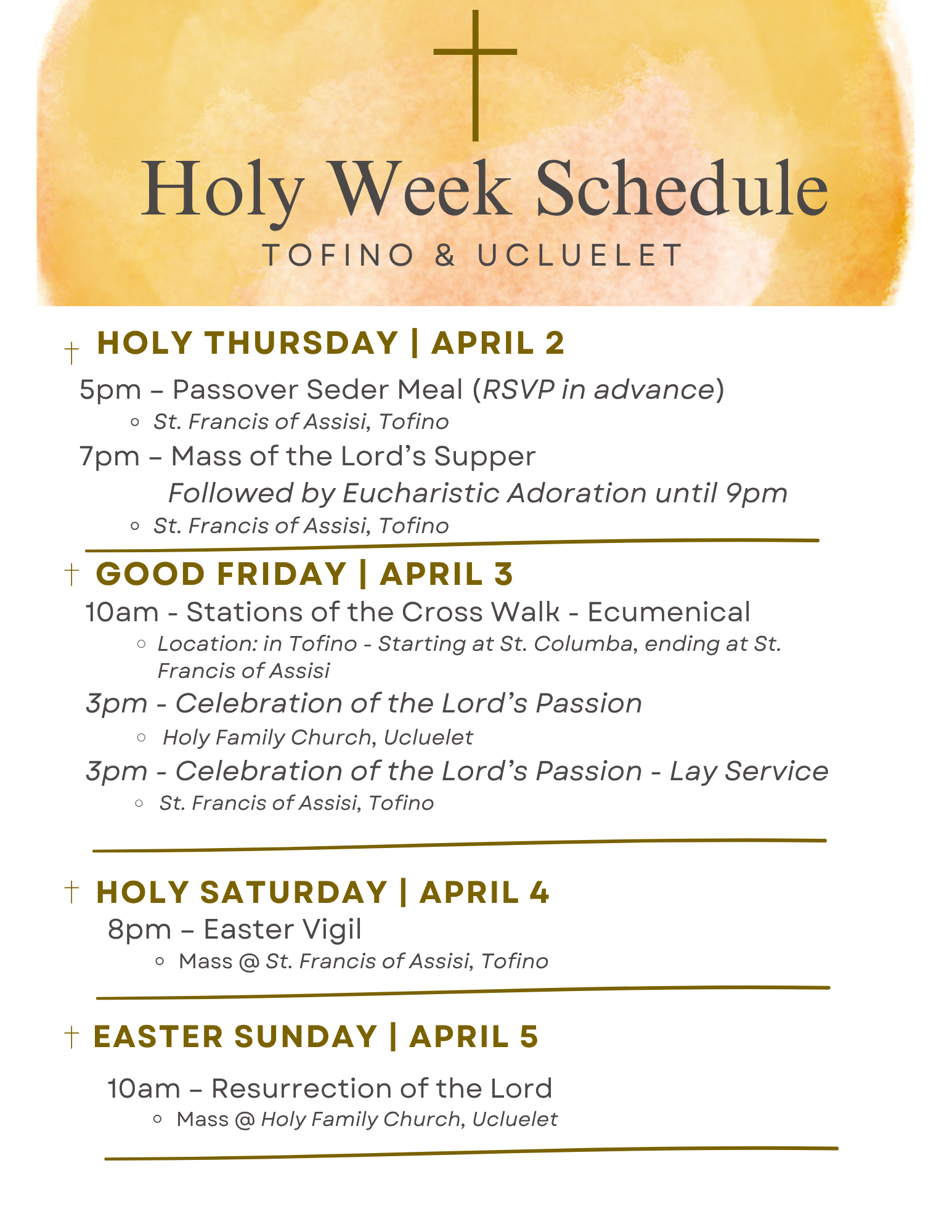 View the Holy Week schedule for Tofino/Ucluelet area here.